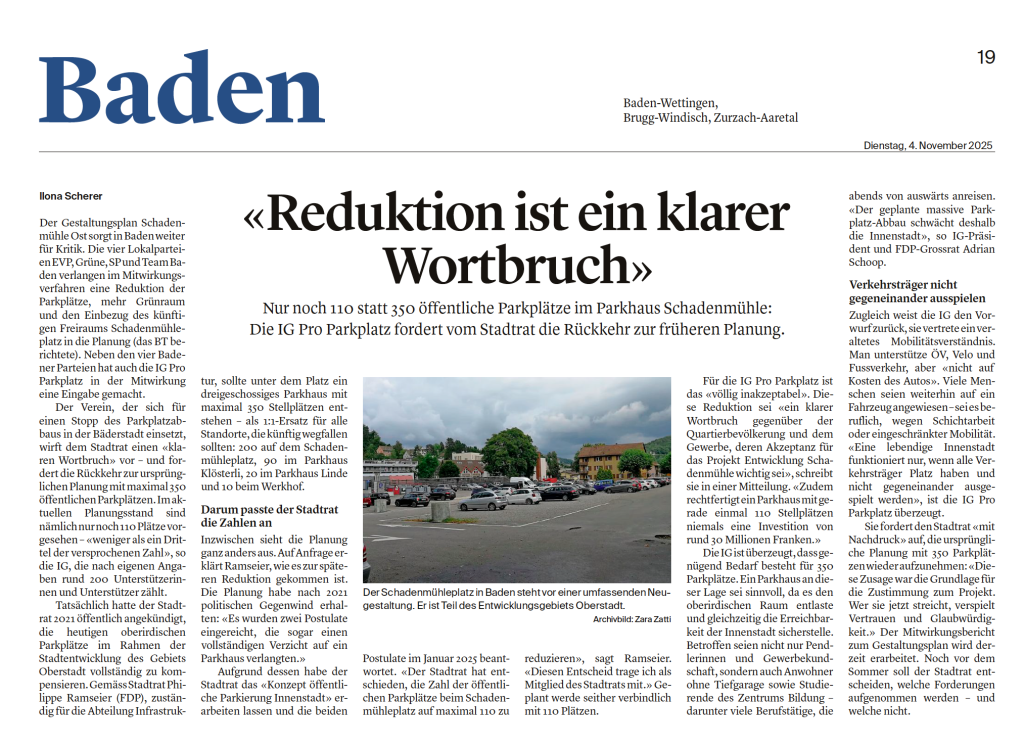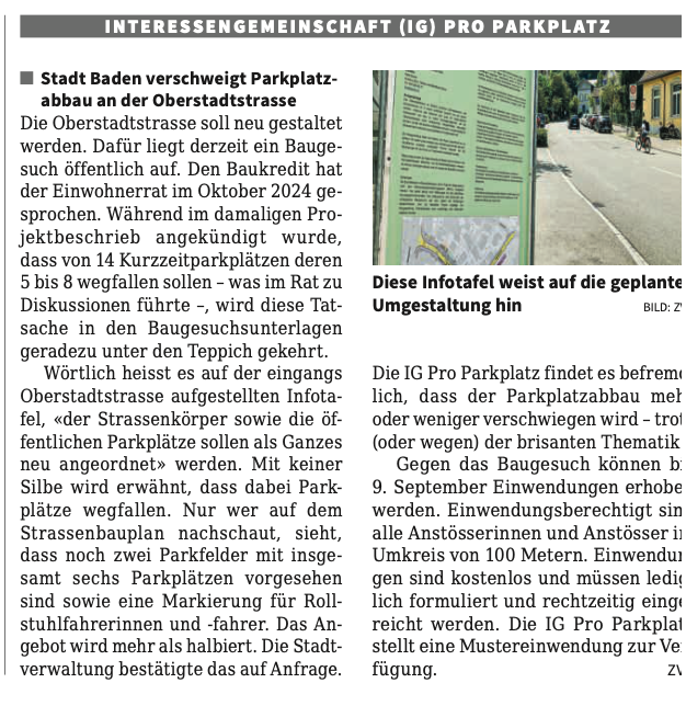 Alexander Etter, city com baden, Vereinsmitglied IG Pro Parkplatz